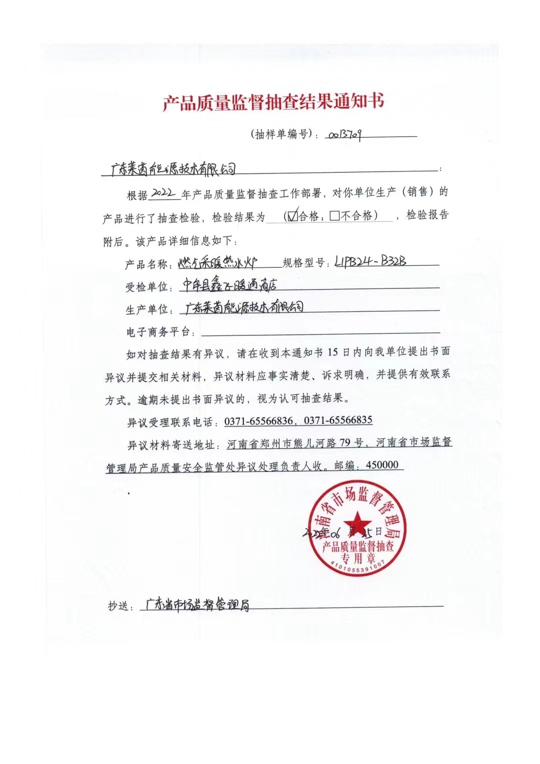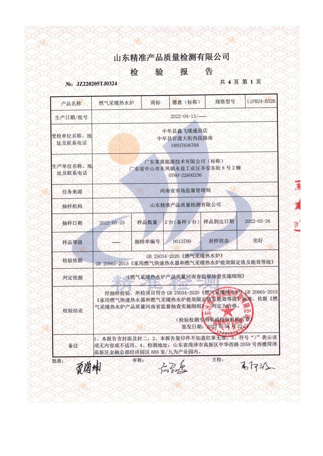 德人意燃气采暖热水炉通过市场检...