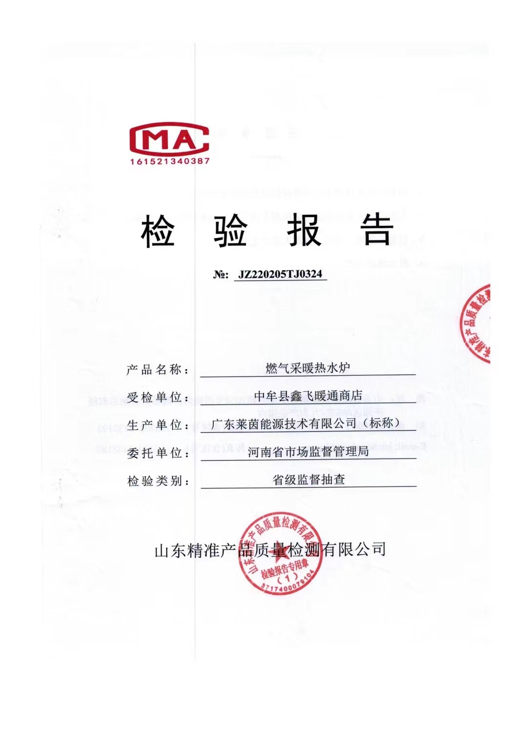 市场抽查检验报告